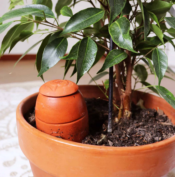 Enfin, il y a la solution écologique et économique : les Ollas. Ces récipients poreux, enterrés près des plantes, libèrent lentement l’eau, fournissant une hydratation personnalisée. La plante vient puiser l’eau lorsqu’elle en a besoin.