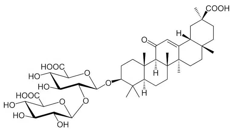 L’acide glycyrrhizique, responsable des effets indésirables de la réglisse. Yikrazuul/Wikimedia Commons